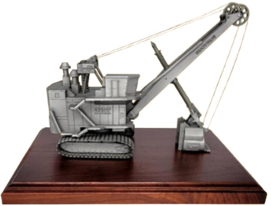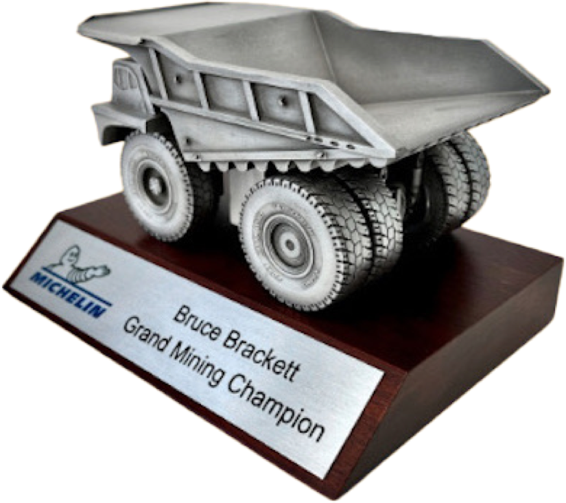 Weighing 4lbs (1.8kg) this heavy haul open pit strip mining dump truck is cast from pewter with exacting details down to the tread on the tires. Our heavy haul dump truck is a unique corporate deal toy, safety award or executive office decoration for the mineral, diamond, copper, iron ore or rock quarry industries.